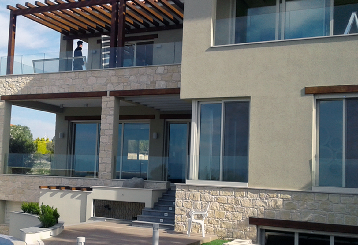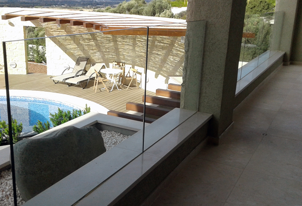 RAILING WITH GLASS AT A VILLA IN PAPHOS